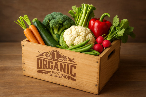 Containing 6/7 portions of vegetables, changing each week so you get a good seasonal organic selection delivered to your home.